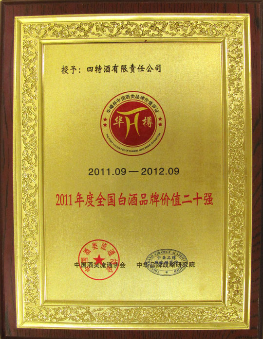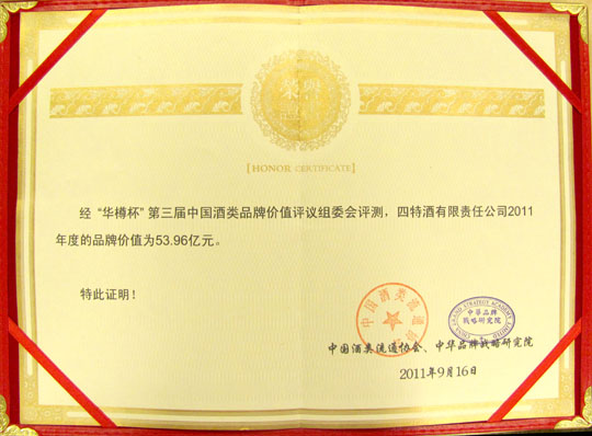 “华樽杯”中国酒类品牌价值评议组委会是经相关部门批准,由中国酒类流通协会和中华品牌战略研究院共同举办的一个全国范围的酒类企业品牌价值评议组织,自2009年以来,已连续成功举办三届。评议组委会由国内外酒类权威专家学者等组成,采用国际公认的品牌价值评估体系评测,从经济指标、品牌实力和品牌状况等方面进行多方考量。在本届评议中,四特酒凭借着优秀的产品质量和先进的营销理念,从两百多家酒类企业中脱颖而出,并毫无悬念的,同时与茅台跻身“中国酒类十大竞争力品牌”和“十大最具投资价值品牌”,其含金量之重,可谓从侧面反映了近年来四特强劲的品牌实力和蒸蒸日上的发展势头。