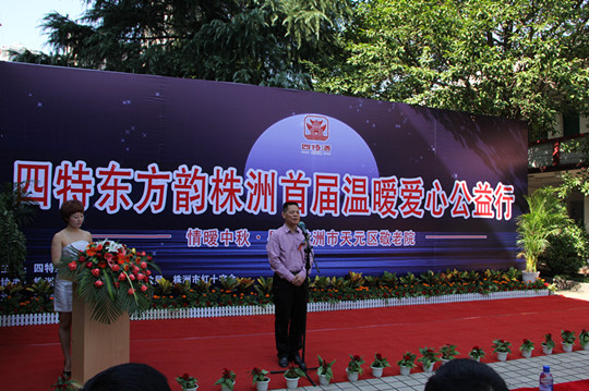 当天上午10点,在一段温馨音乐中,“四特东方韵(株洲)首届温暖爱心公益行”首先在天元区敬老院拉开了帷幕。株洲市副市长李异建,市民政局局长马民杰,红十字会会长张丽岩等人一同来到现场,并与敬老院的老人们一起观看精彩的文艺演出。下午,“四特东方韵(株洲)首届温暖爱心公益行”,又在株洲市福利院展开。主办方给孩子们带去了洗漱用品、学习用品、月饼及心理咨询室设备。那一张张洋溢着灿烂的笑容表达了他们的心情,现场不仅有艺术团表演,还有福利院小朋友自己的表演……